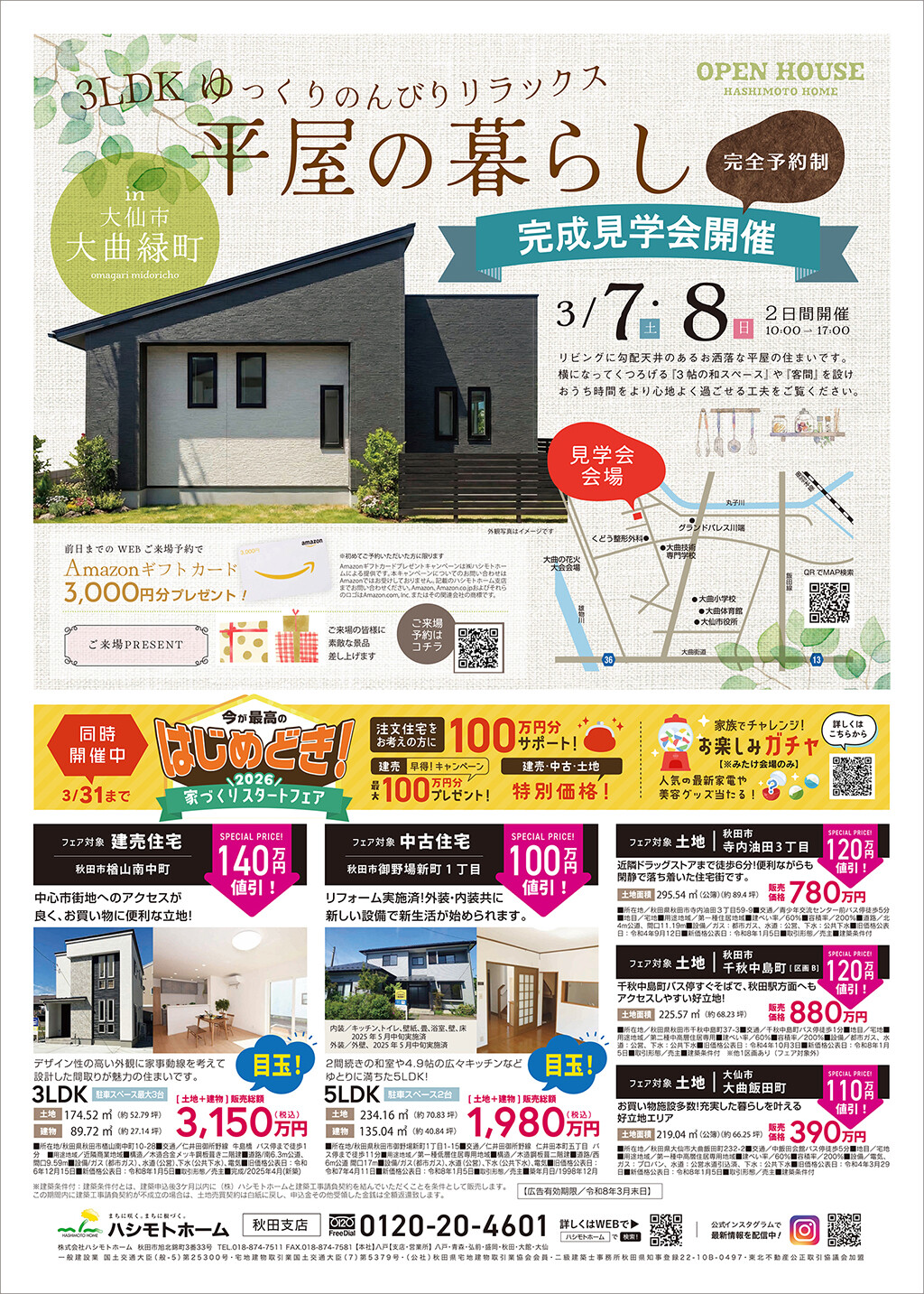 (株)ハシモトホーム 秋田支店 TEL:0120-20-4601