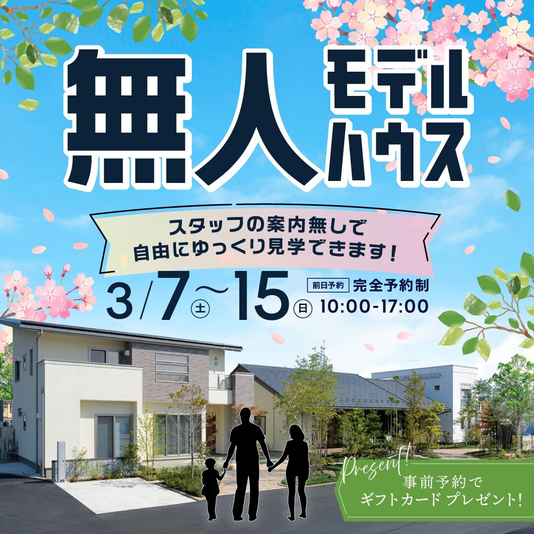 「無人モデルハウスイベント」3月7日〜3月15日の期間中、