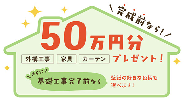 50万円分の外構工事・家具・カーテンをプレゼント!